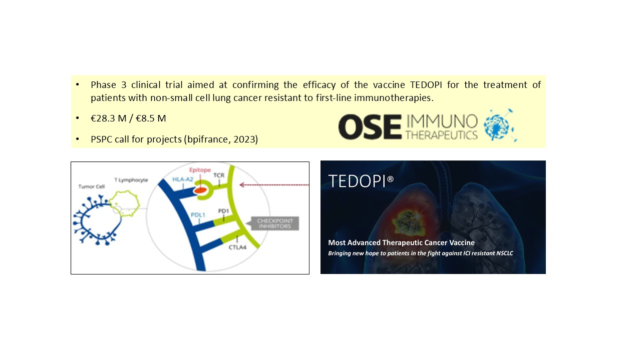 He also supported the preparation and follow-up of the applications. His support resulted in bpifrance funding of €8.426 million for the company’s most advanced asset, Tedopi®, the most advanced therapeutic cancer vaccine in clinical development. The funded project aims to conduct a Phase 3 clinical trial to confirm the vaccine’s efficacy compared with the chemotherapy regimens commonly used in patients with non-small cell lung cancer who have developed resistance to first-line immunotherapy. The activities carried out under this project are essential to the future marketing of this innovative therapeutic vaccine.